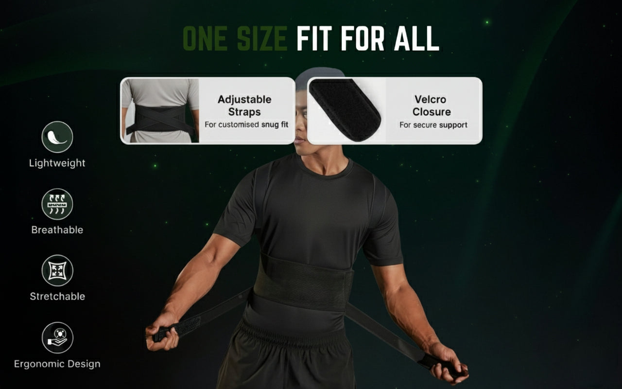 Ye scientifically designed belt spine ko straight karta hai, rounded shoulders ko improve karta hai aur back pain ko reduce karta hai—wo bhi bina kisi discomfort ke.